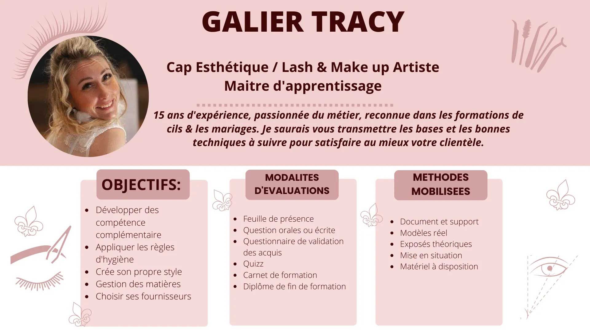 - Étudier la pose du cil ( cil à cil, effet mixte, volume russe, rehaussement de cils et mascara semi permanent, crée un Mapping, connaître les formes, les tailles , les épaisseurs, connaître les adhésifs.